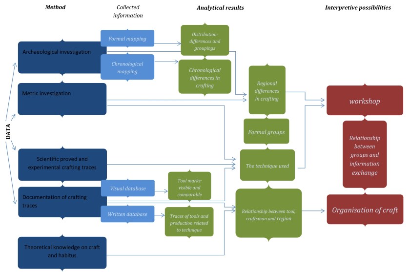 Regardless of modern views (see Ingold 2000: 312-313), technique as well as technology should (in the study of prehistoric communities) be understood through a return to the roots of the respective terms. Thus the word technology originates from the Greek tekhnē and logos. Tekhnē is the pictorial representation of an inseparable combination of art, skill, craft, law, as well as knowledge, attitudes, understanding and awareness (see Phillips et al. 2010; Dobres 2000: 50-59; Ingold 2000: 316). Logos in its original meaning is not only reason, the structure of reality, but also language and accountability. Interestingly, the term technikos in its original meaning includes the ability, the art and practicality, and thus all things tekhnē means (see Dobres 2000: 52).
