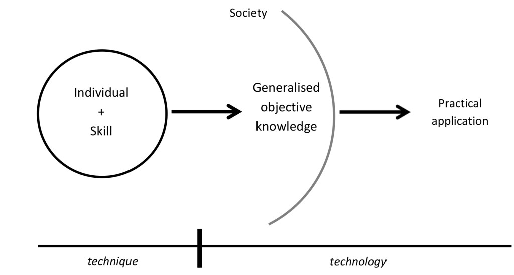 Technique and technology should be considered as two independent concepts. Yet their meanings have undergone change over the centuries, with the result that both terms are interpreted in a modern perspective in a very different way than contained in the origin of the word (Ingold 2000: 312ff.).